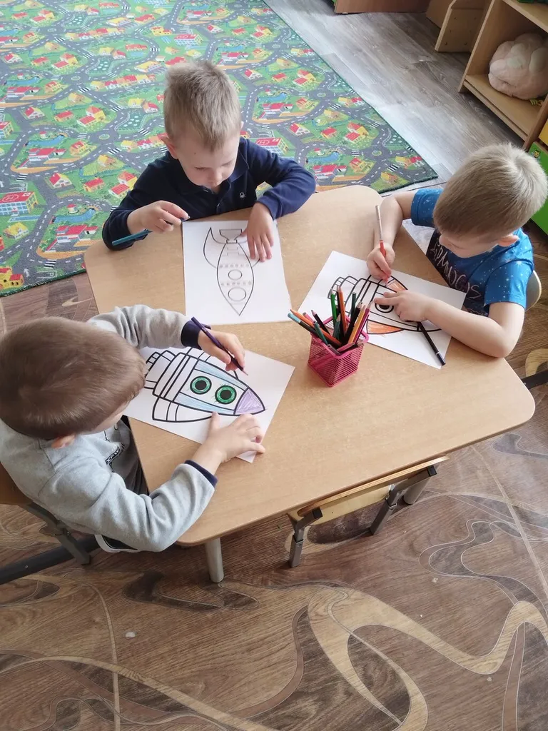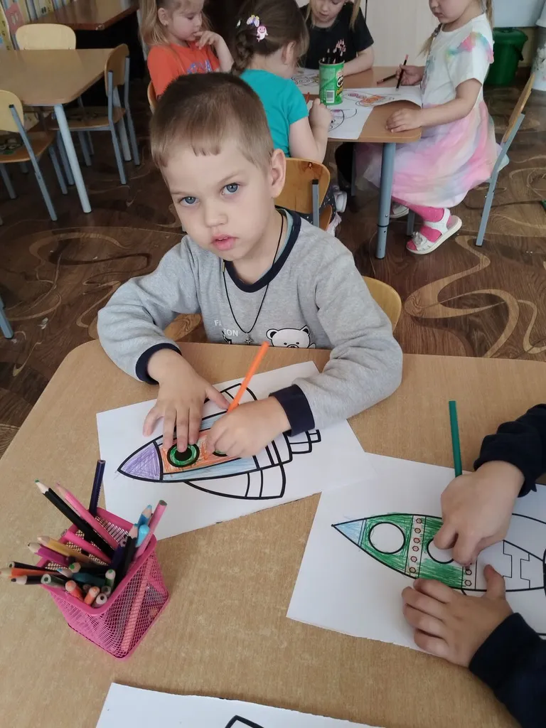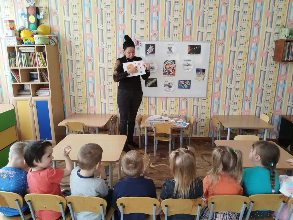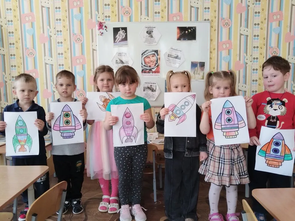 Проведенные в группе занятия и беседы были направлены на развитие познавательных и творческих способностей воспитанников, которые осуществлялись через различные виды детской деятельности - чтение рассказов о космосе, планетах, космонавтах, выставка детских рисунков на тему "День космонавтики", конструирование ракет.